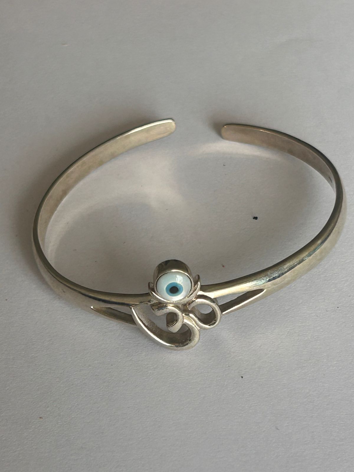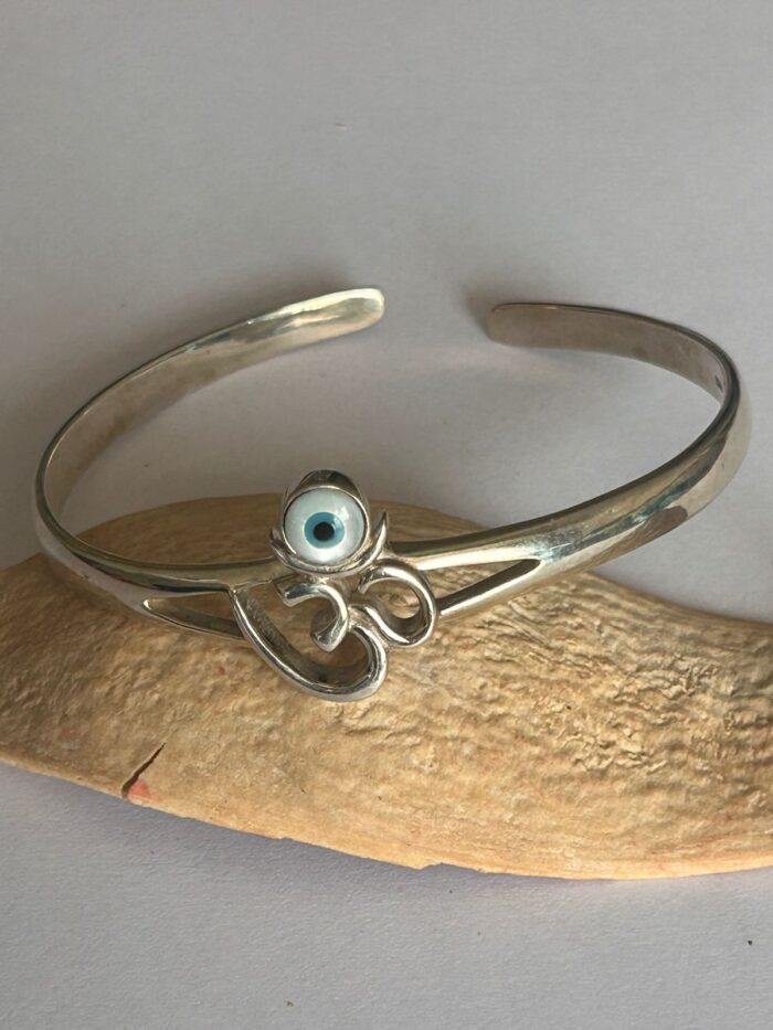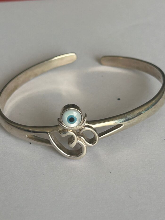 925 Sterling Silver OM Evil Eye Adjustable kada for Women & Girls