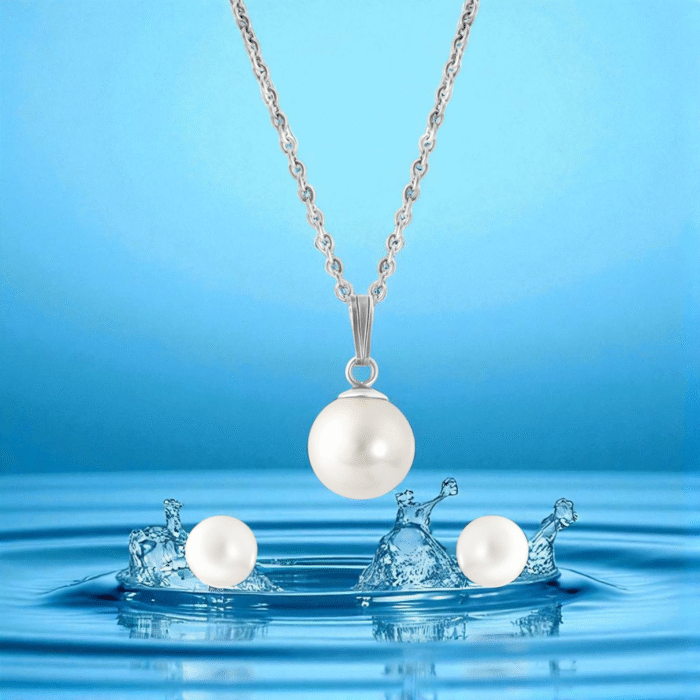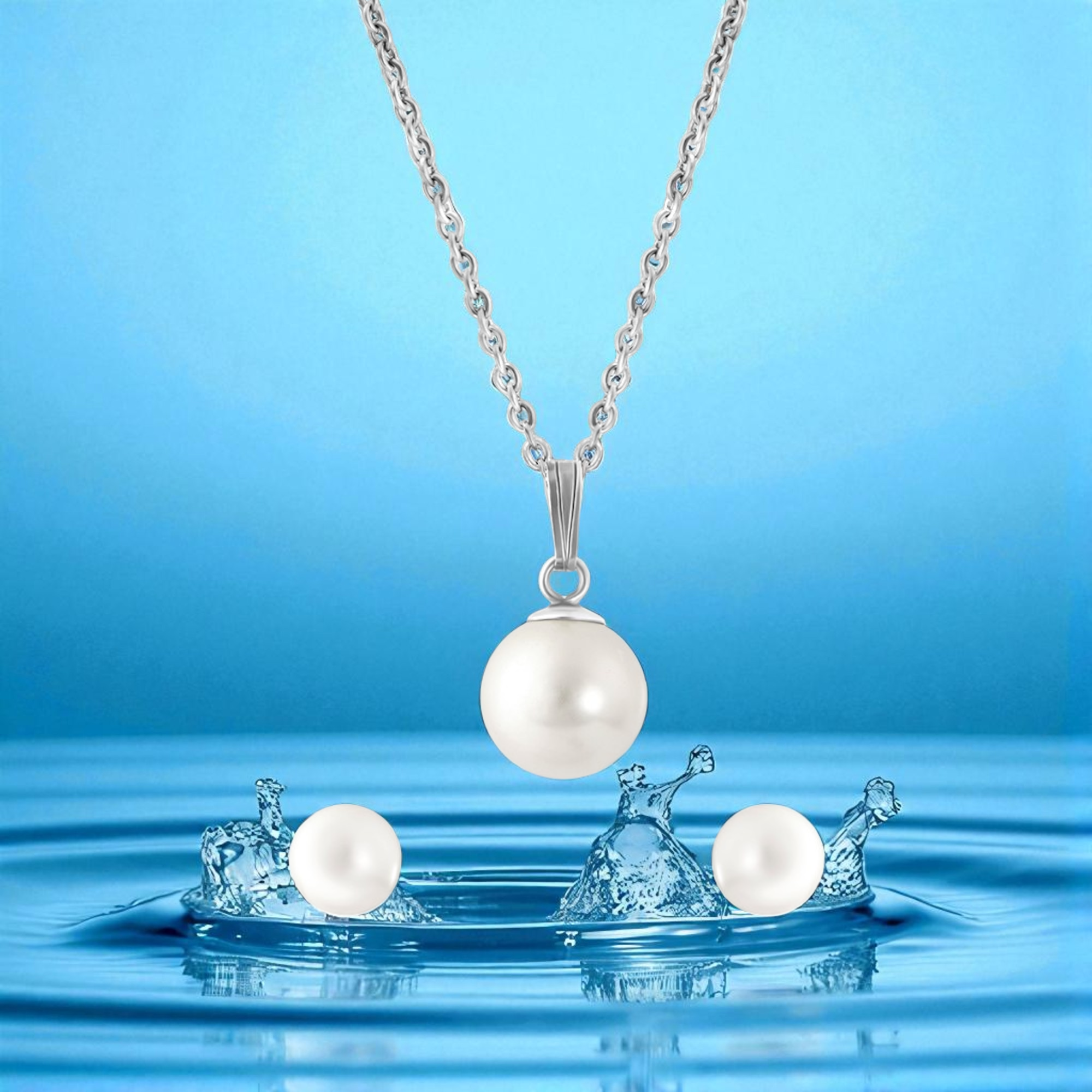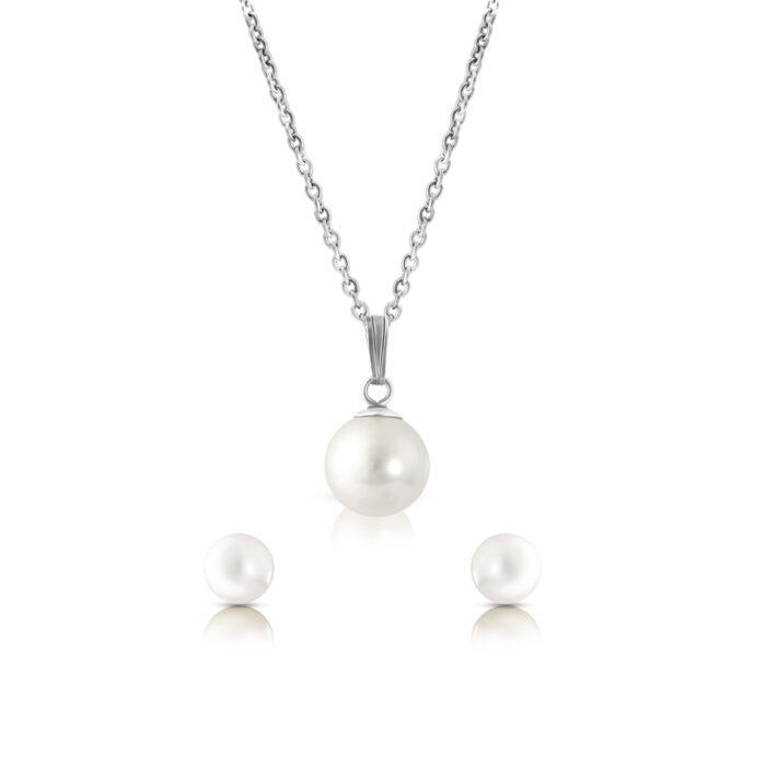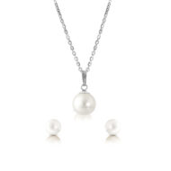 925 Silver White Pearl Moon Set with Earrings & Pendant