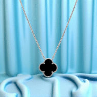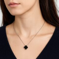 925 Sterling Silver Black four-leaf clover Pendant with Chain