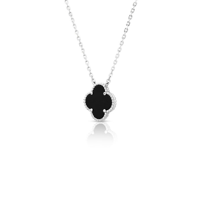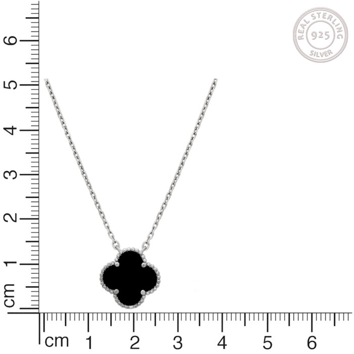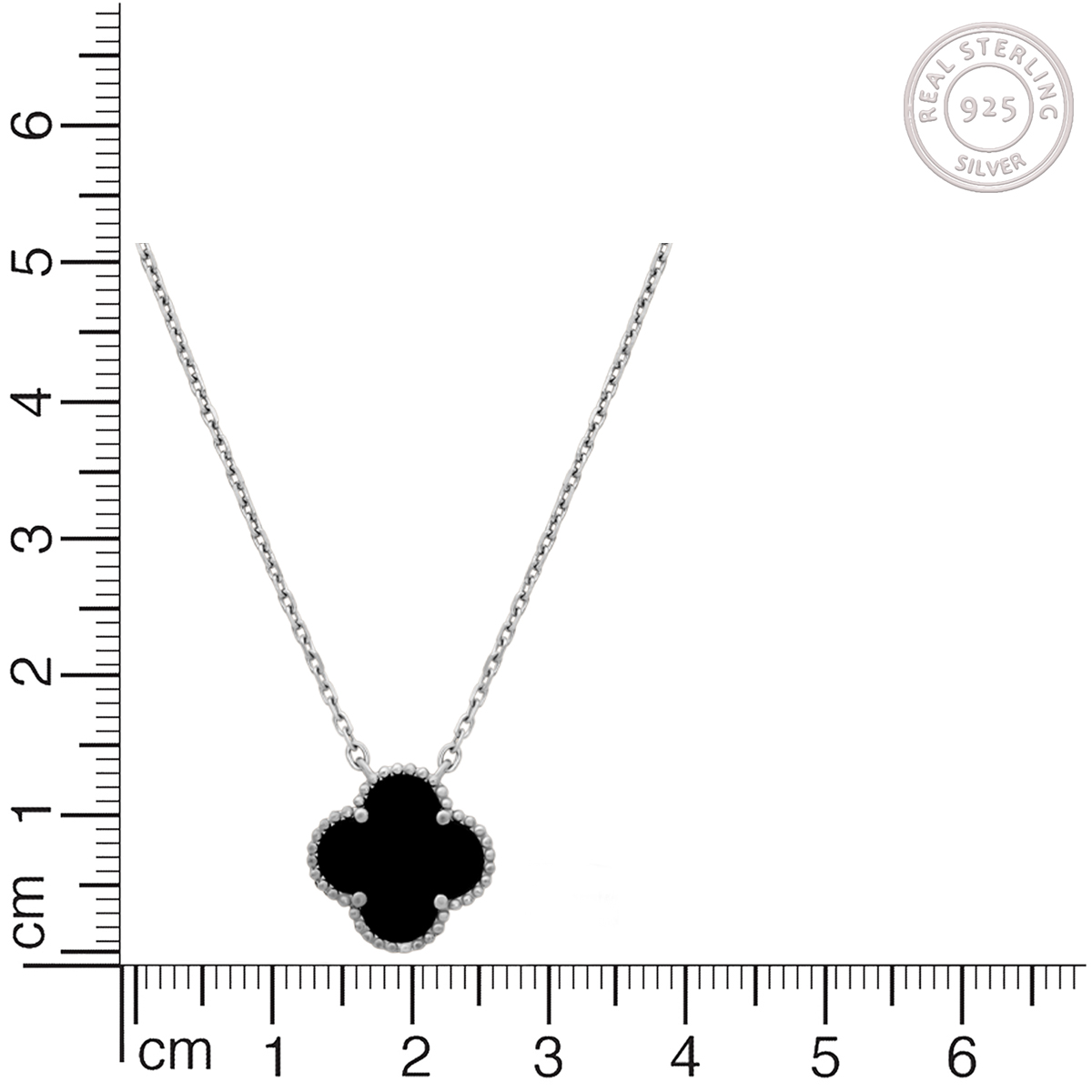 925 Sterling Silver Black four-leaf clover Pendant with Chain