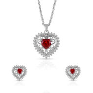 925 Sterling Silver Heart Pendant Set with Red CZ Stone | Vintage Love Design