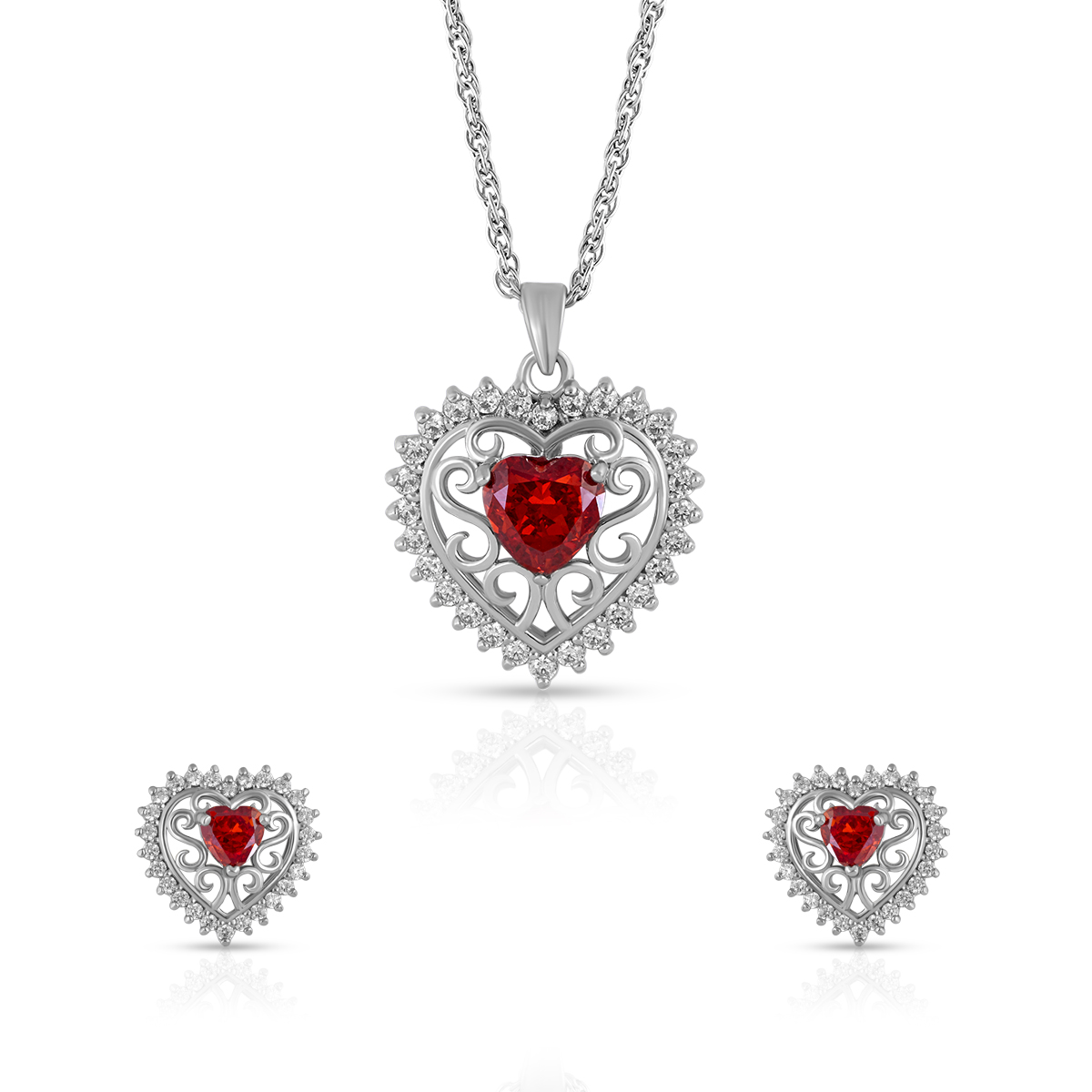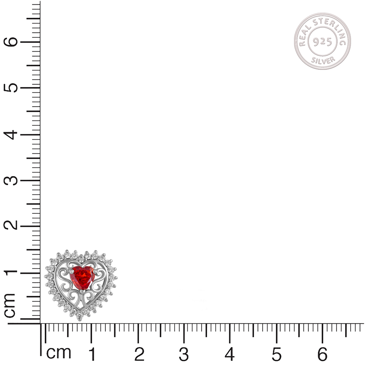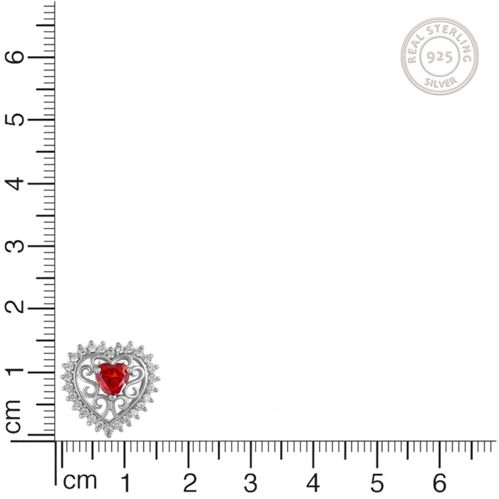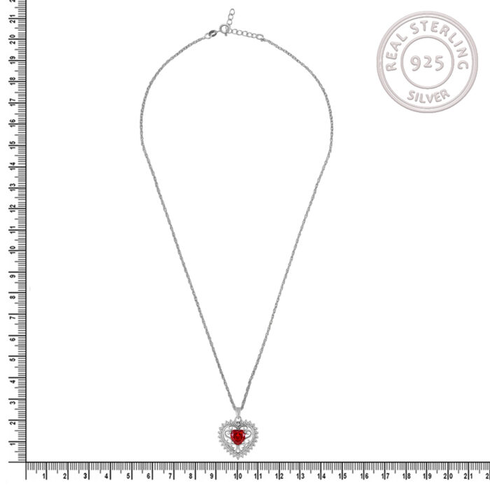 925 Sterling Silver Heart Pendant Set with Red CZ Stone | Vintage Love Design