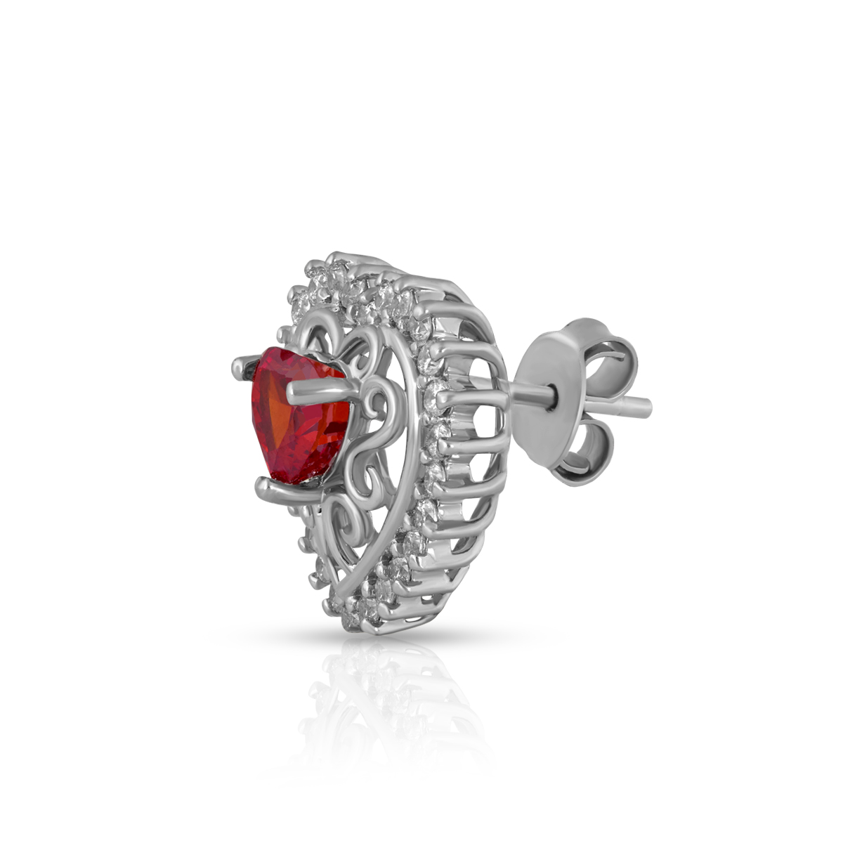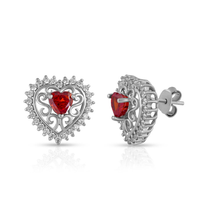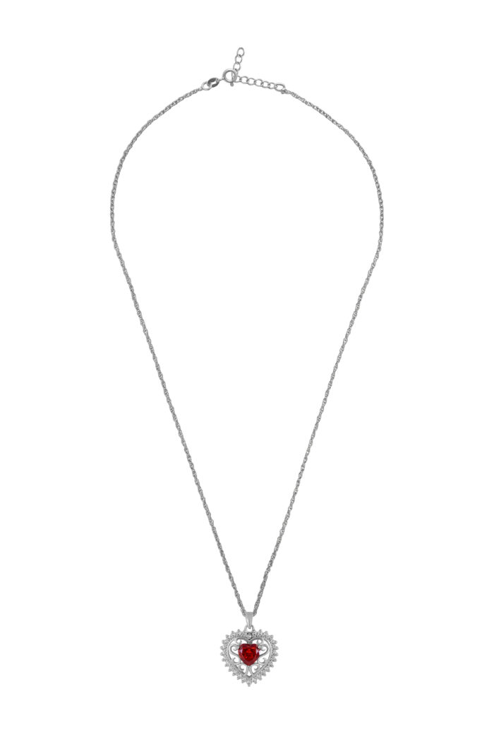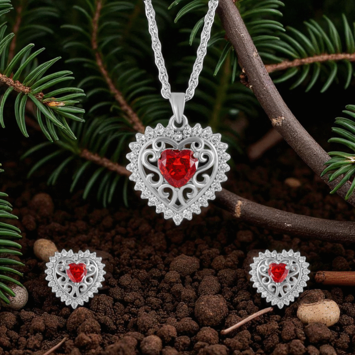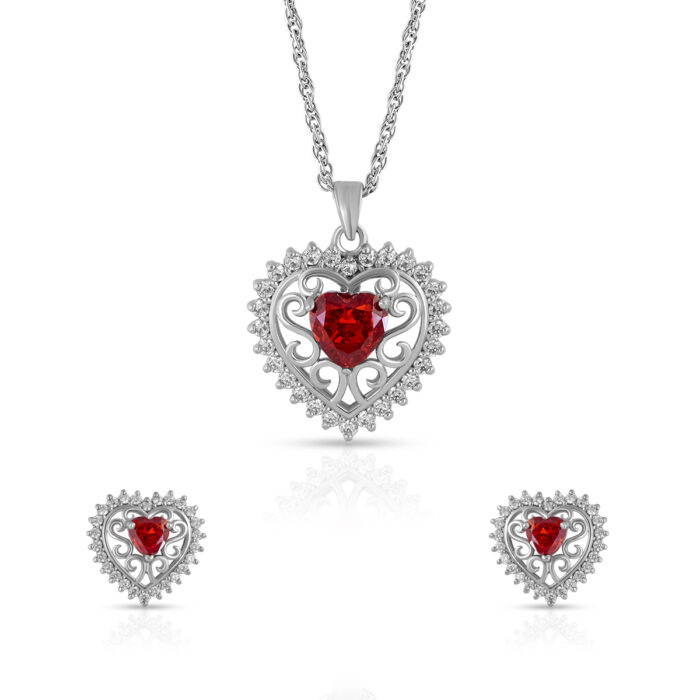 925 Sterling Silver Heart Pendant Set with Red CZ Stone | Vintage Love Design