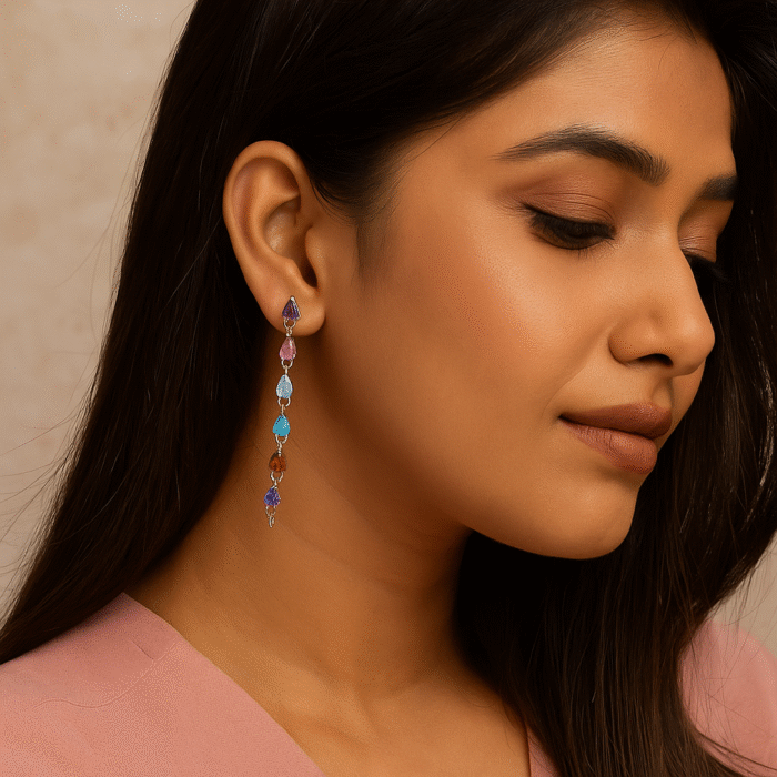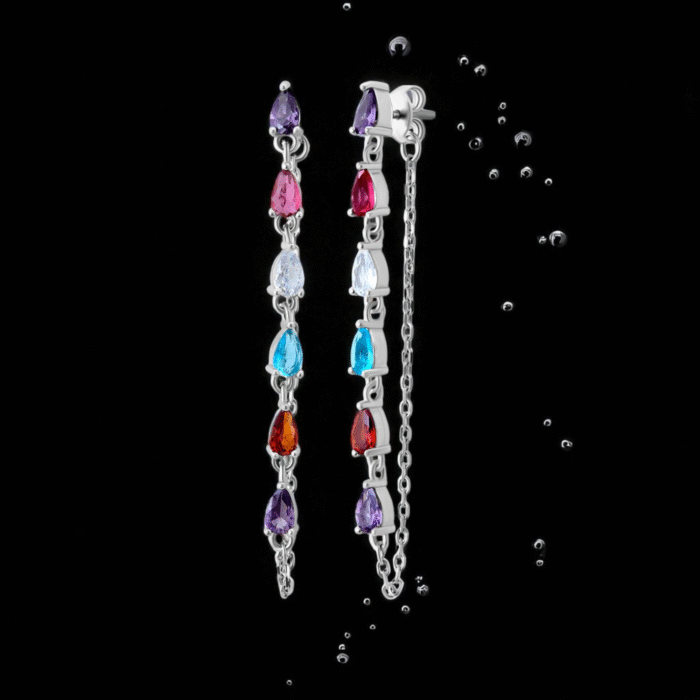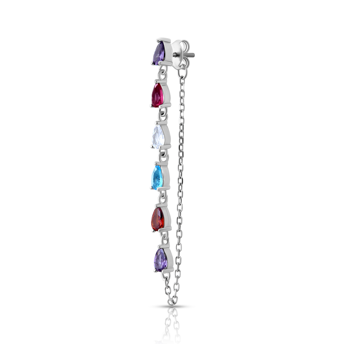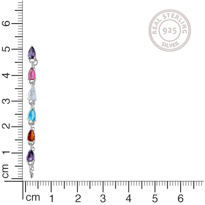 925 Sterling Silver Long Drop Earrings for Women | Multi-Colored Teardrop CZ Stones