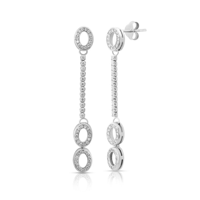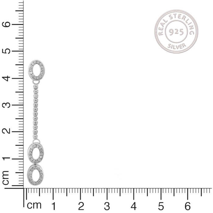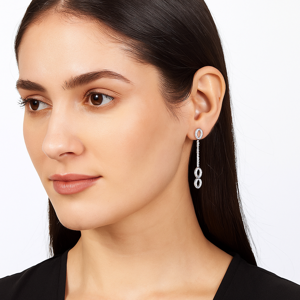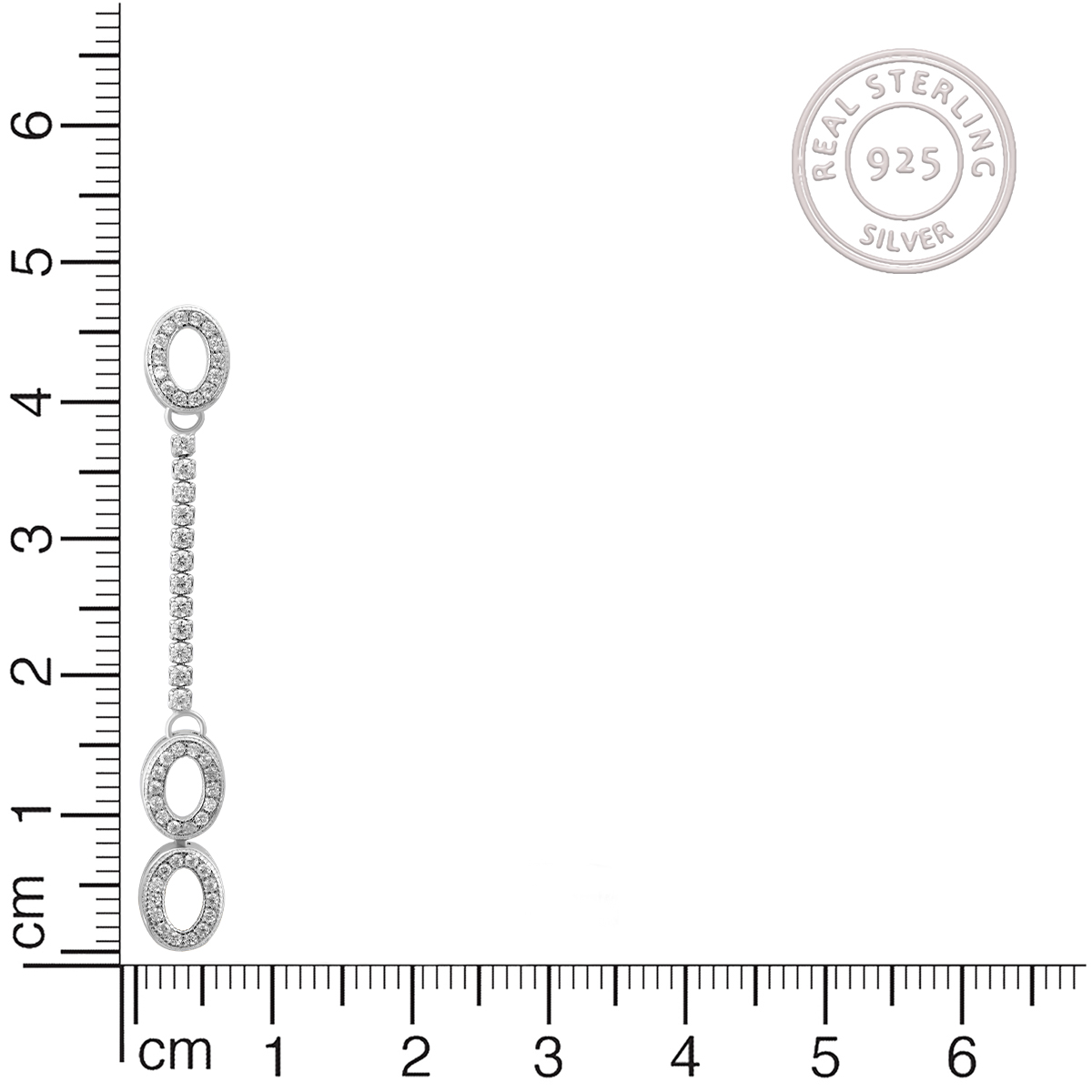 925 Sterling Silver Long Drop Earrings for Women | Triple Oval Design with CZ Stones