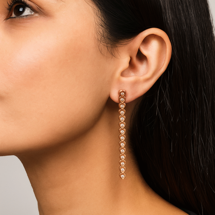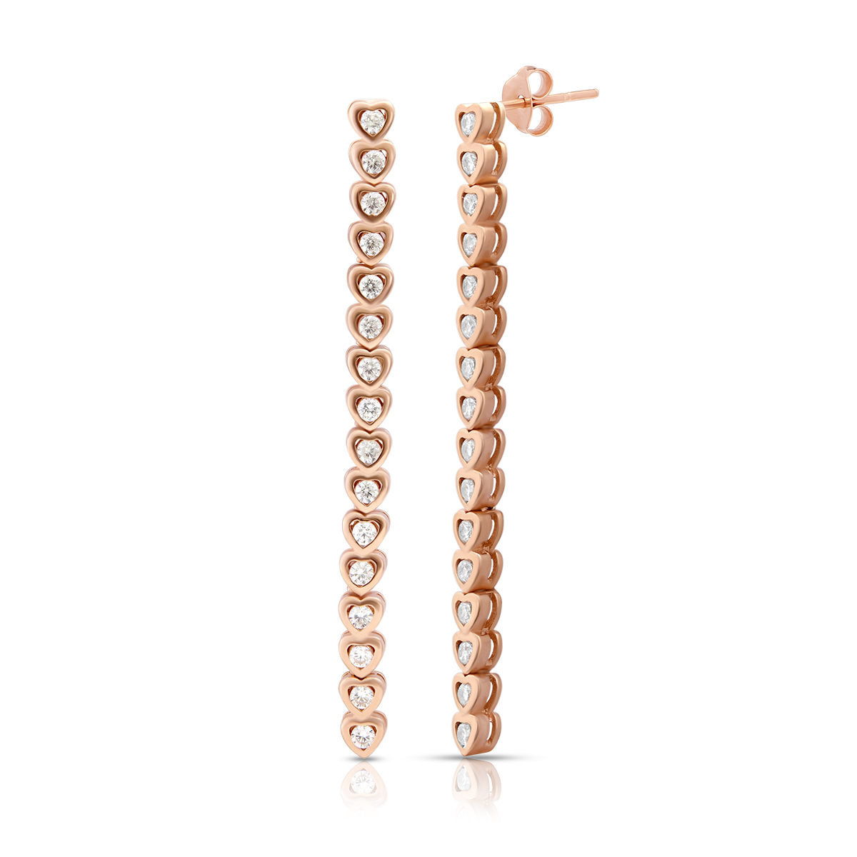 925 Sterling Silver Rose Gold Heart Drop Earrings for Women | CZ Studded Long Dangler Design