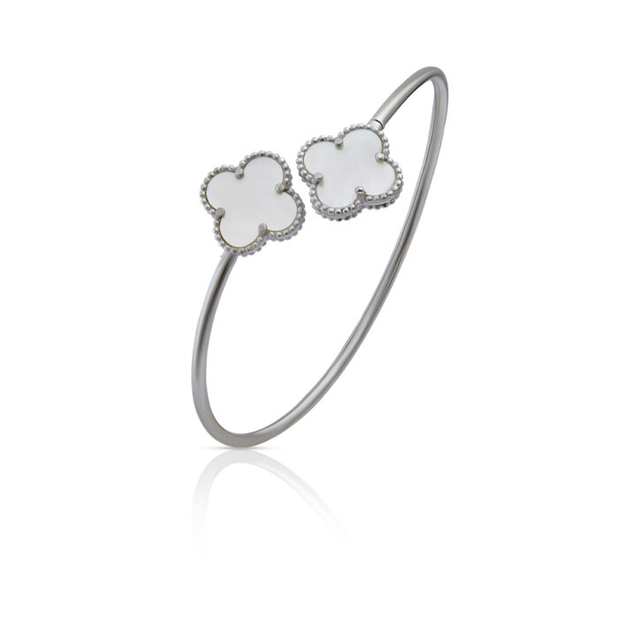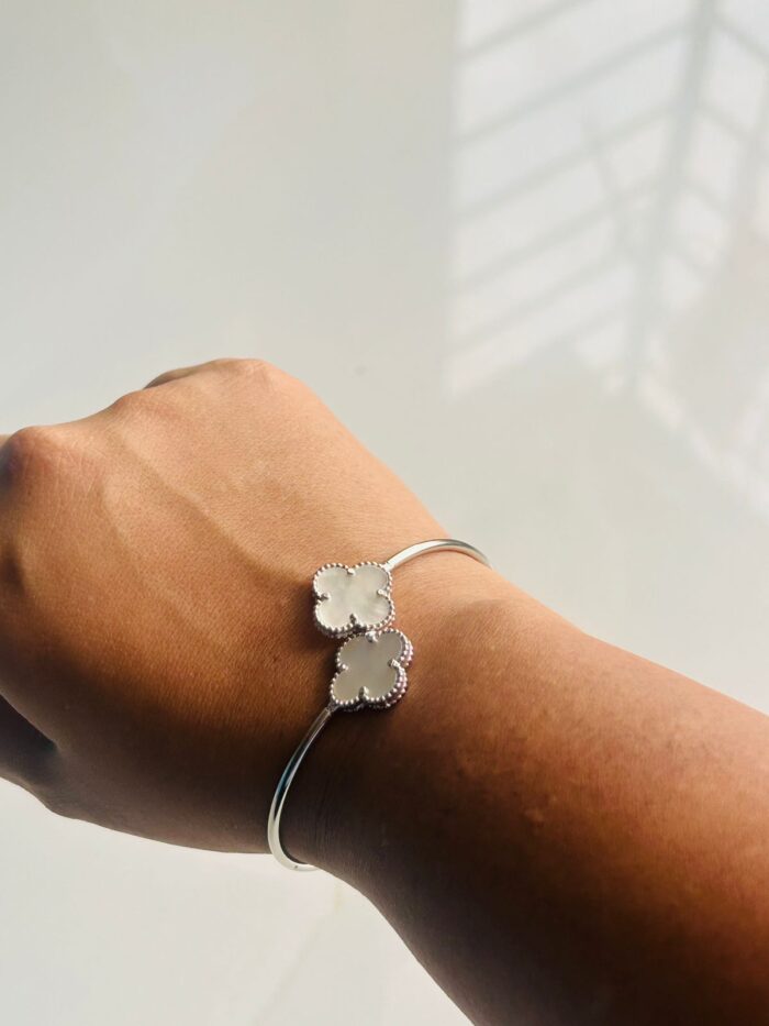 925 Sterling Silver White Clover Adjustable Bracelet for Women & Girls