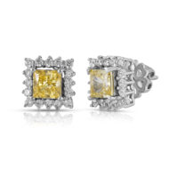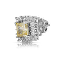 925 Sterling Silver Yellow Stone Pendant Set | Princess-Cut CZ with Diamond Halo