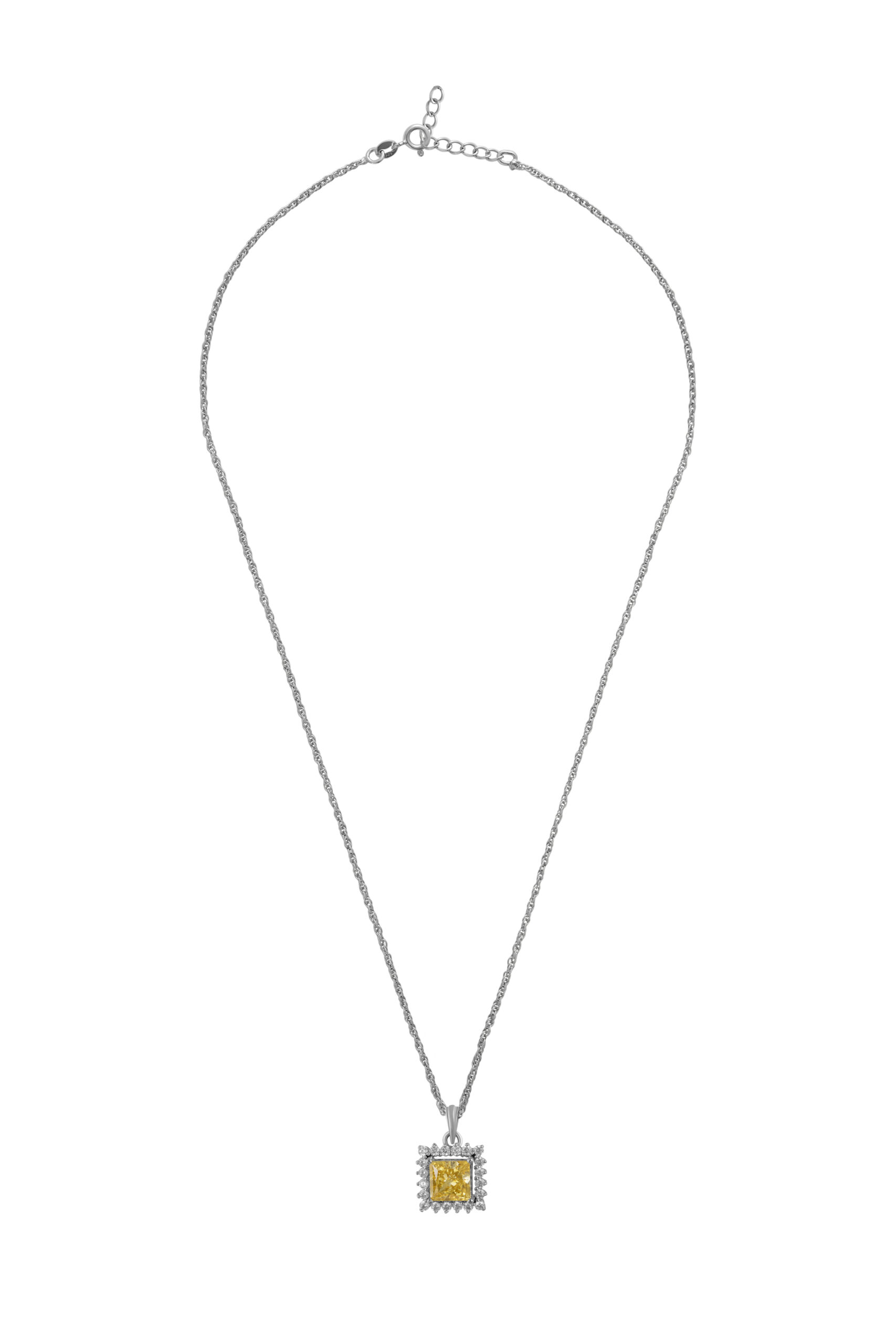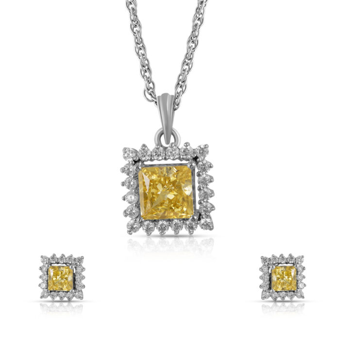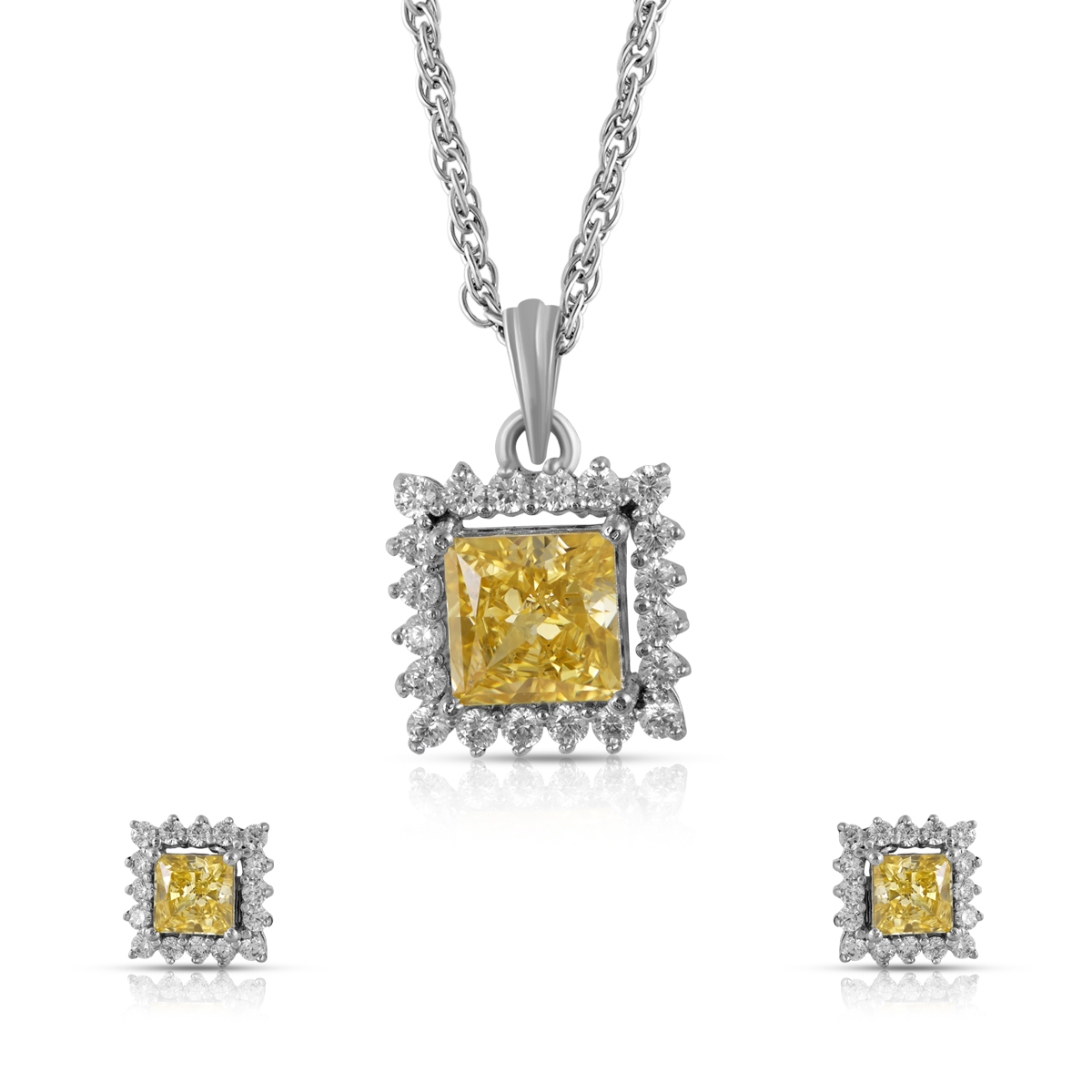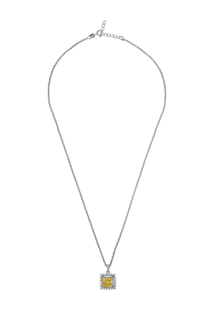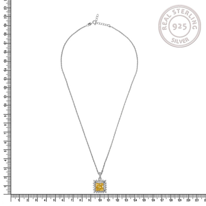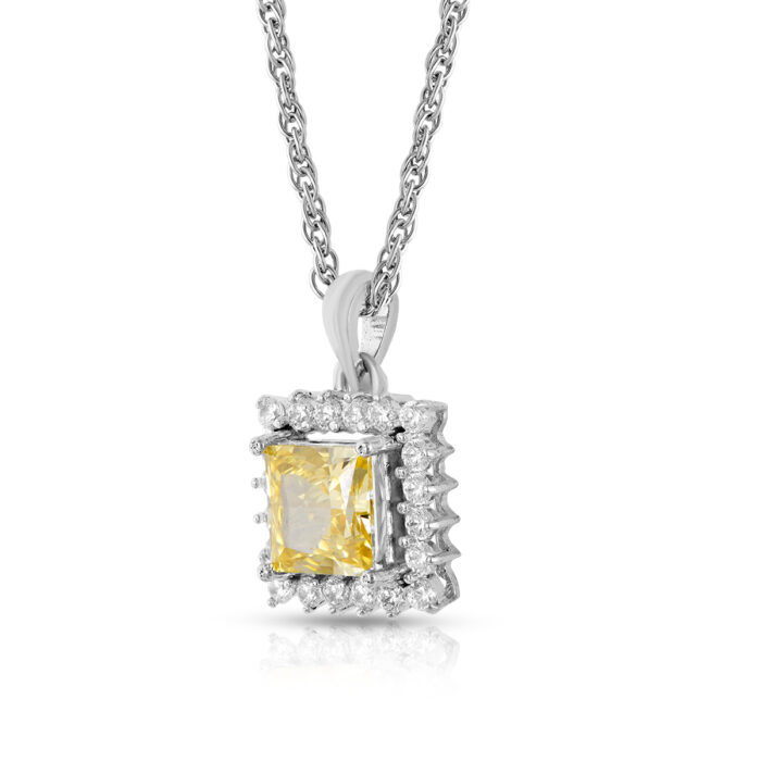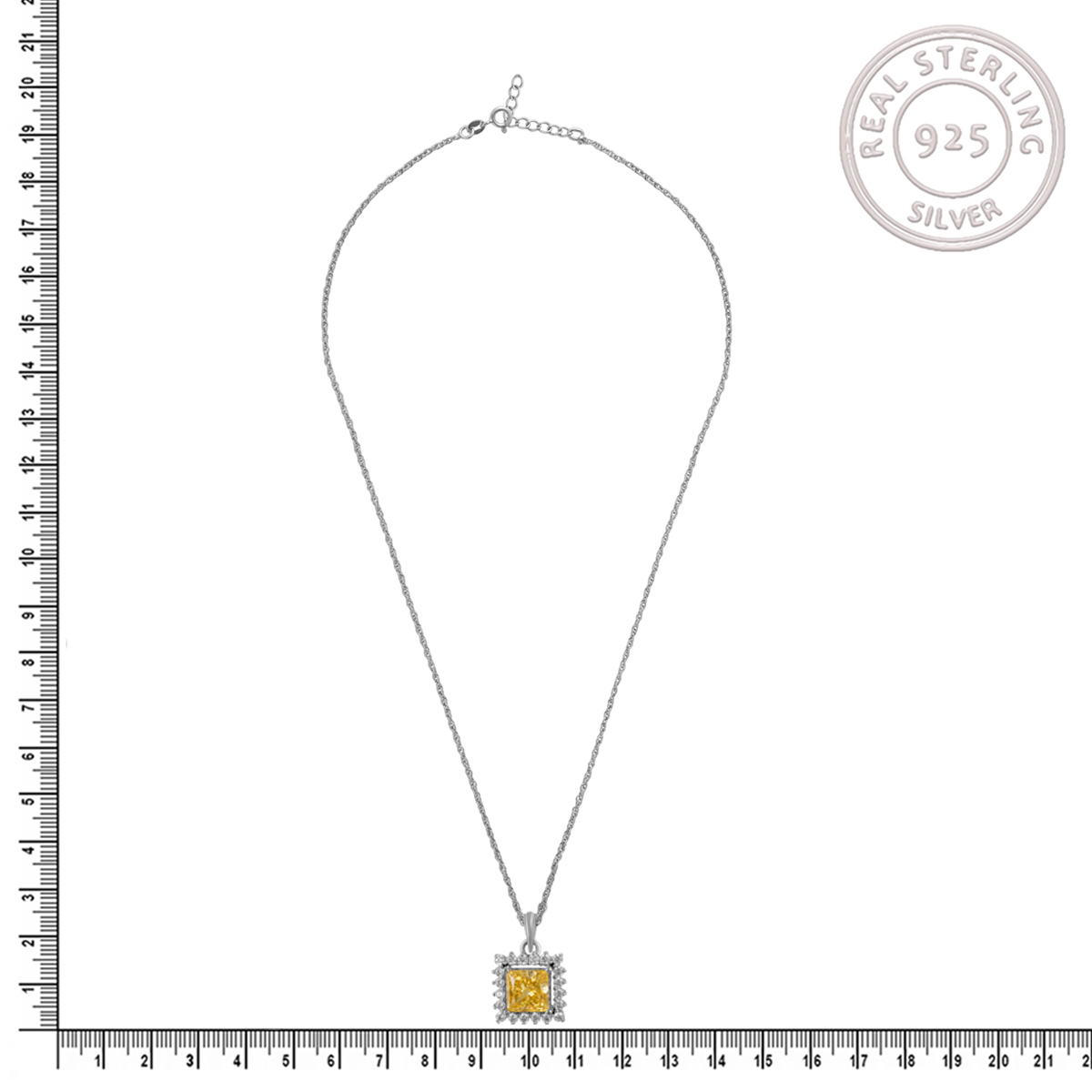 925 Sterling Silver Yellow Stone Pendant Set | Princess-Cut CZ with Diamond Halo